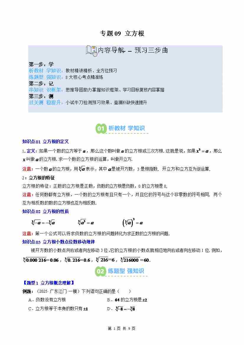 专题09: 立方根(3知识点8大题型思维导图过关测)(解析版)