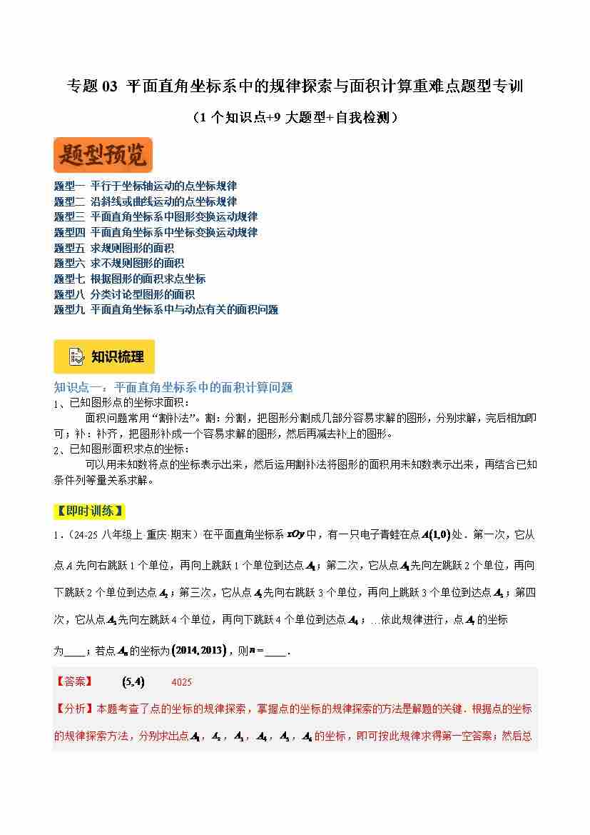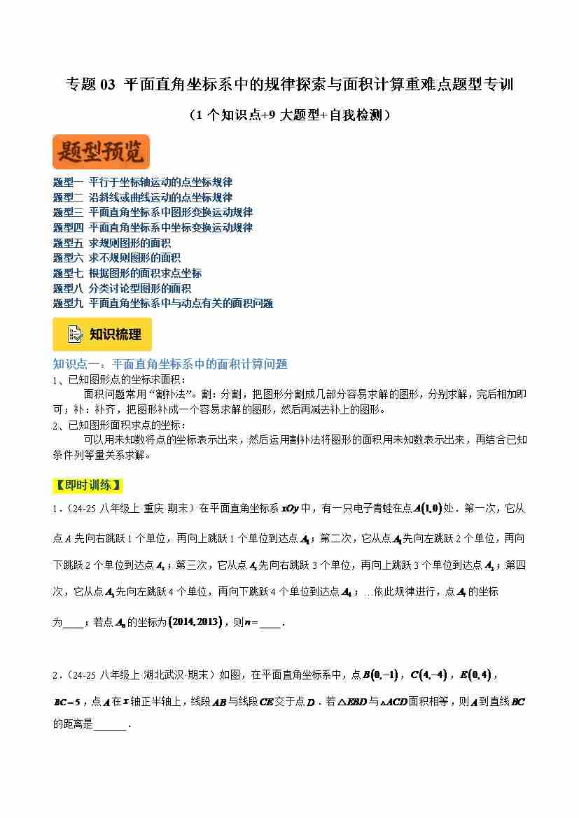 专题03 平面直角坐标系中的规律探索与面积计算重难点题型专训(1个知识点9大题型自我检测)(学生版)
