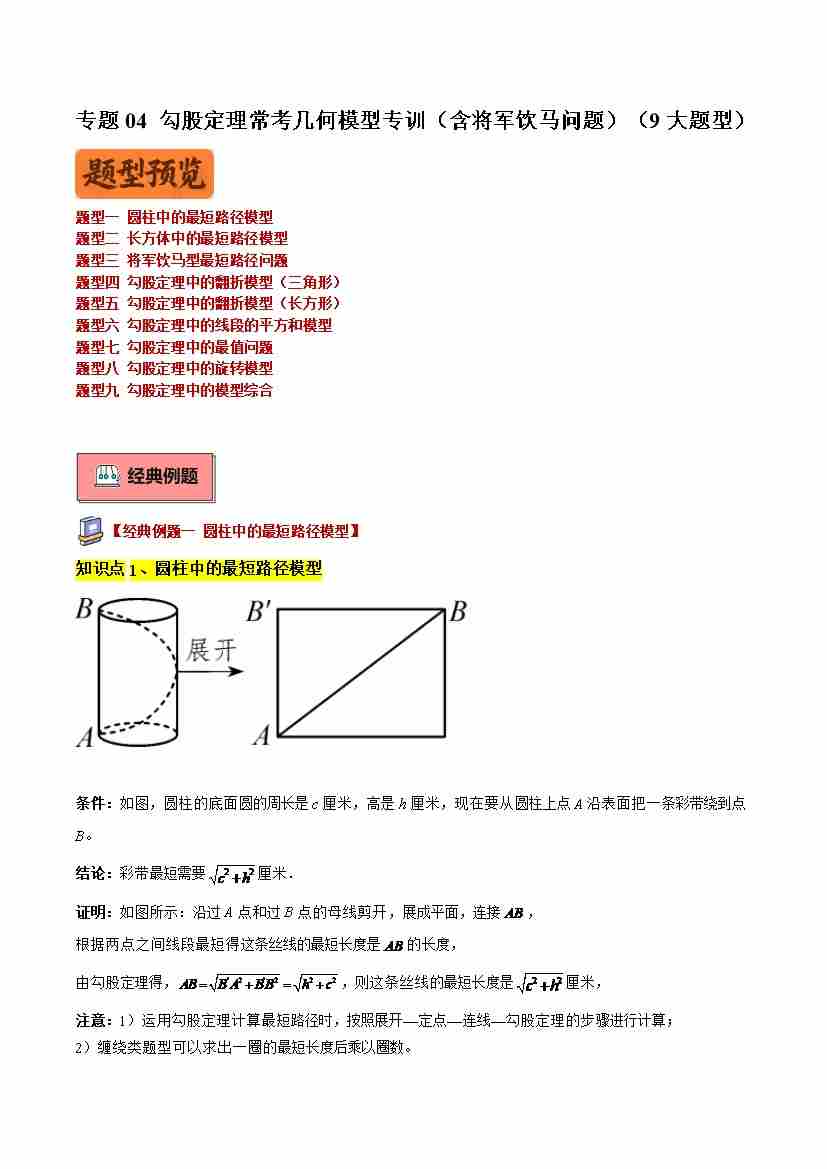 专题04 勾股定理常考几何模型专训(9大题型)(解析版)