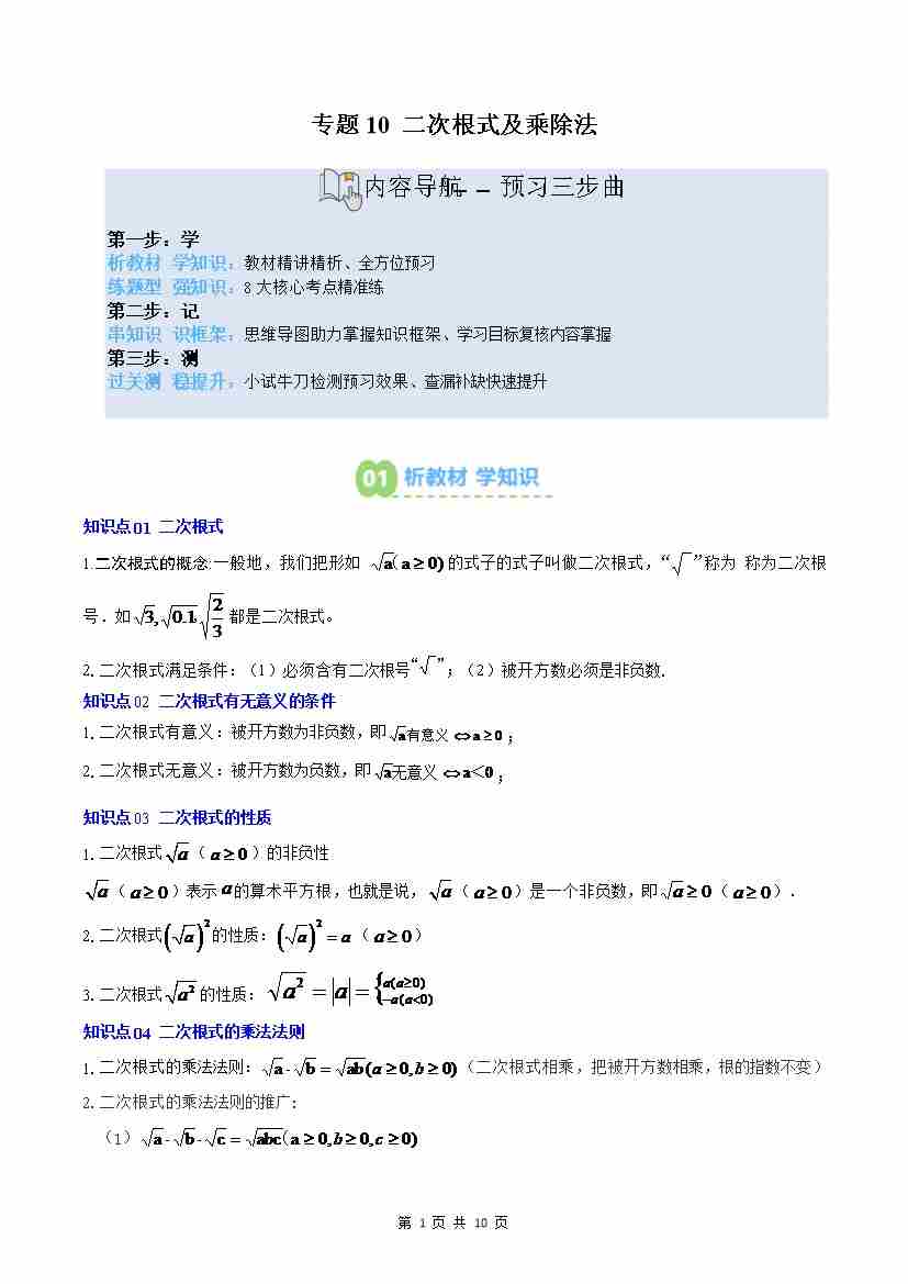 专题10: 二次根式及乘除法(5知识点8大题型思维导图过关测)(原卷版)