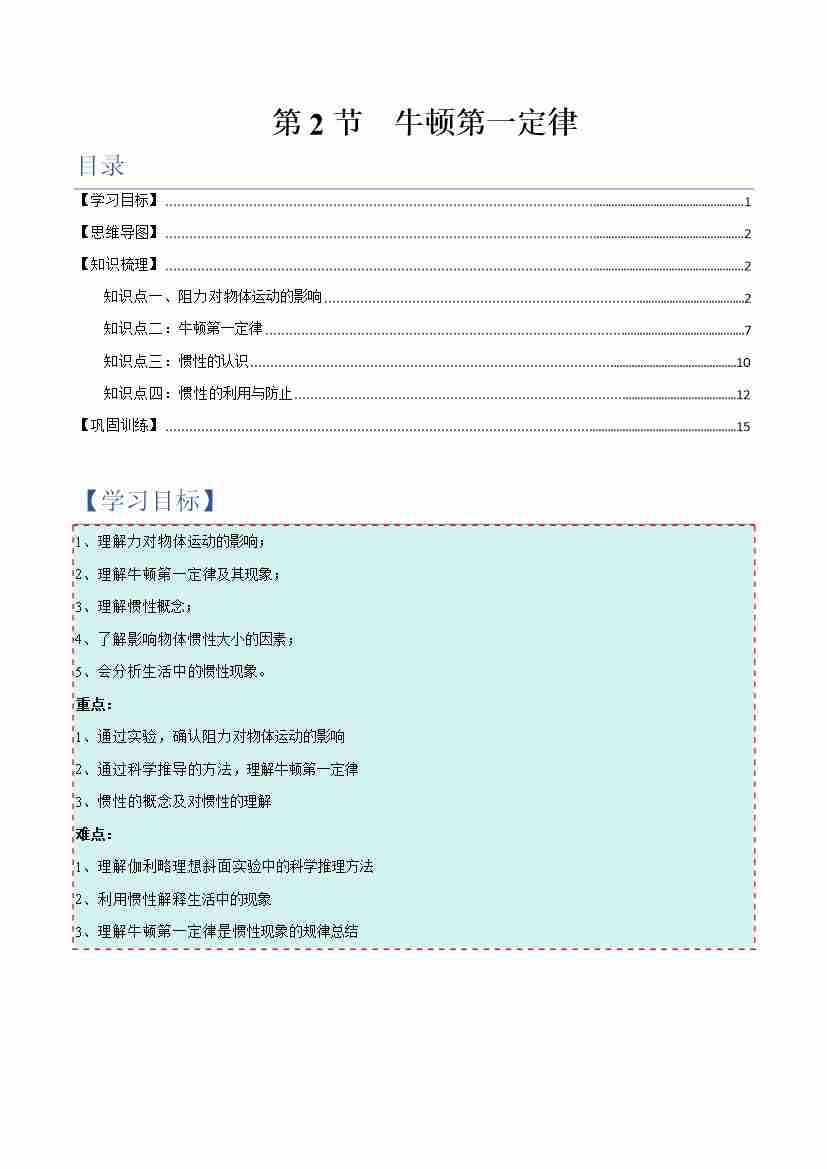 二、牛顿第一定律(举一反三讲义)(原卷版)