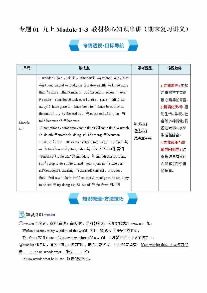 专题01 九上Module 1~3 教材核心知识串讲(期末复习讲义)(教师版)