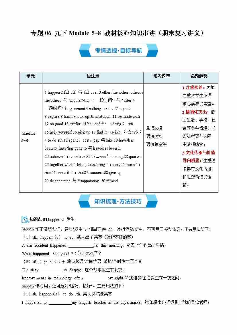 专题06 九下Module 5~8 教材核心知识串讲(期末复习讲义)(原卷版)