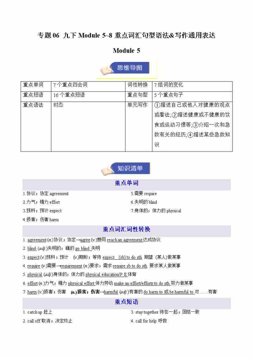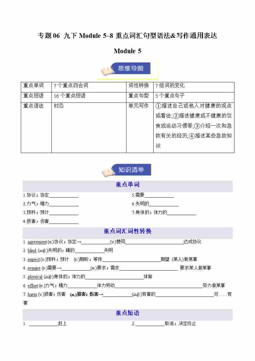专题06 九下Module 5~8 重点词汇句型语法&写作通用表达(期末复习知识清单)(默写版)