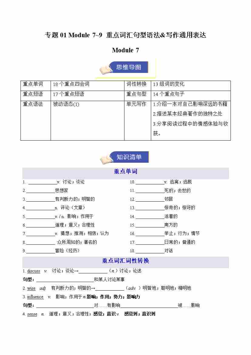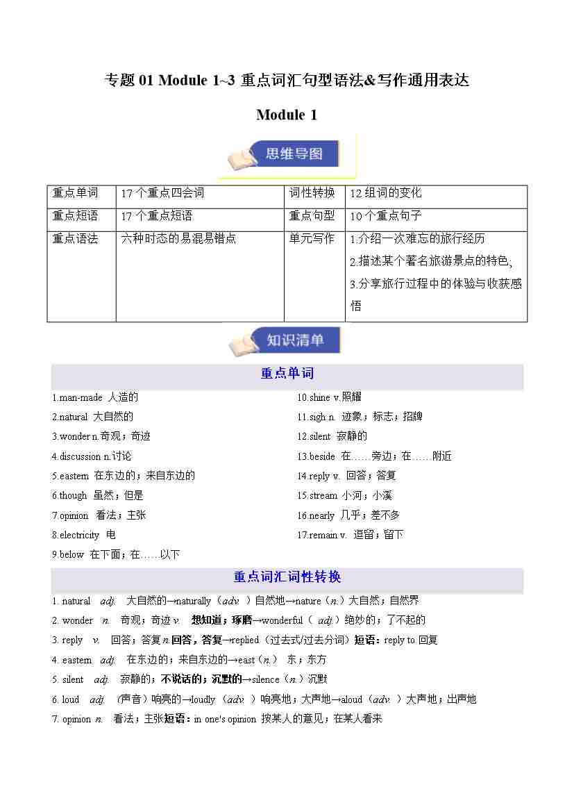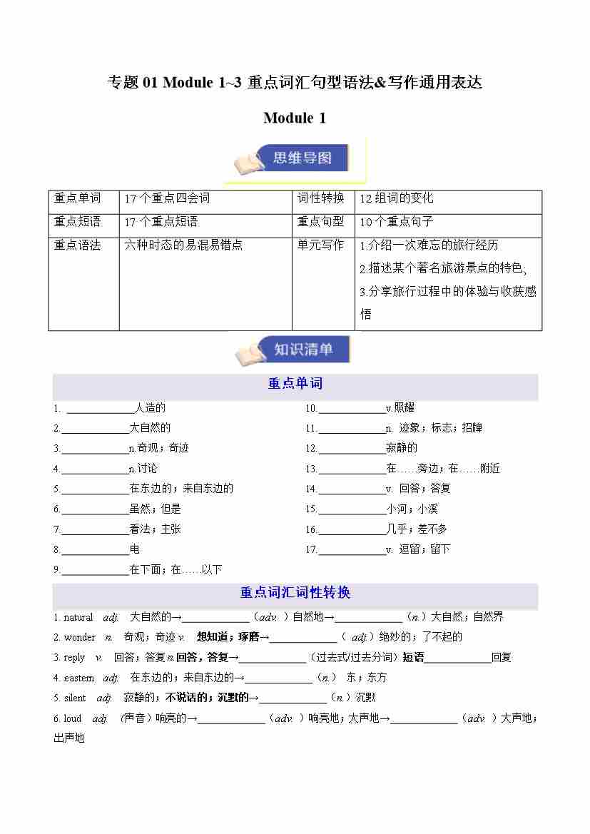 专题01 九上Module 1~3 重点词汇句型语法&写作通用表达(期末复习知识清单)(默写版)