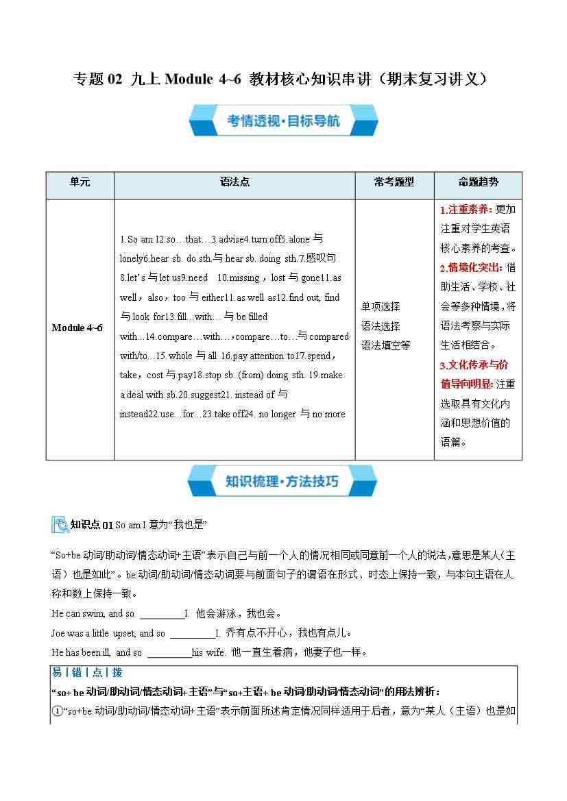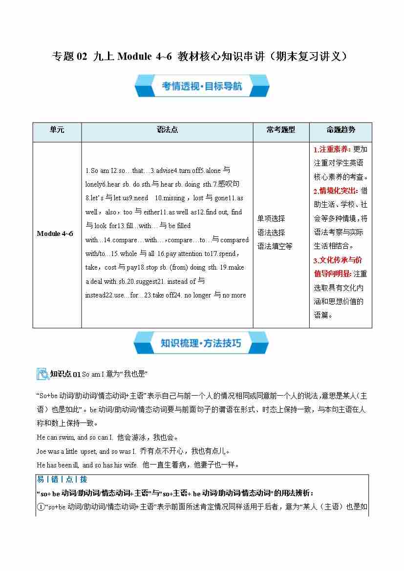 专题02 九上Module 4~6 教材核心知识串讲(期末复习讲义)(教师版)