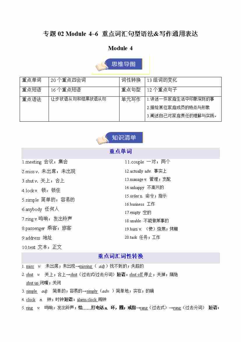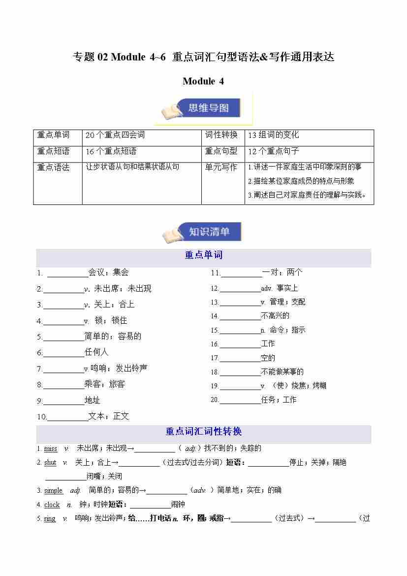 专题02 九上Module 4~6 重点词汇句型语法&写作通用表达(期末复习知识清单)(默写版)