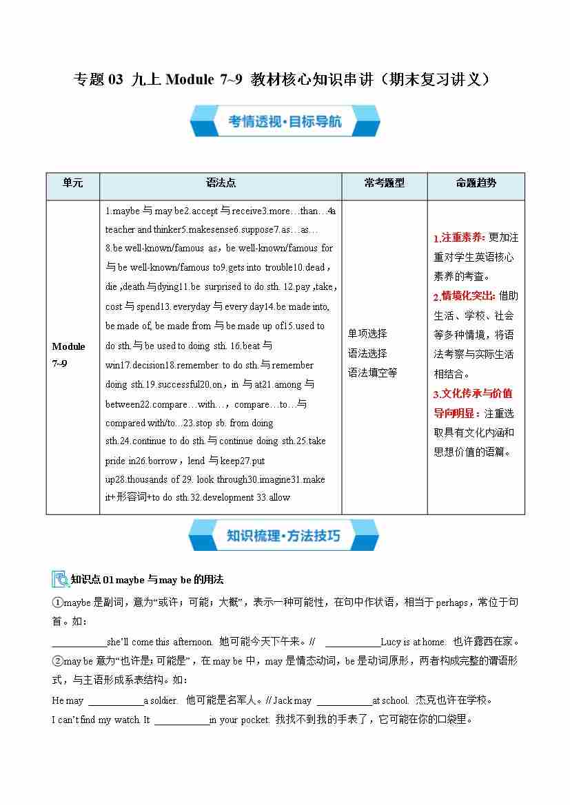 专题03 九上Module 7~9 教材核心知识串讲(期末复习讲义)(教师版)