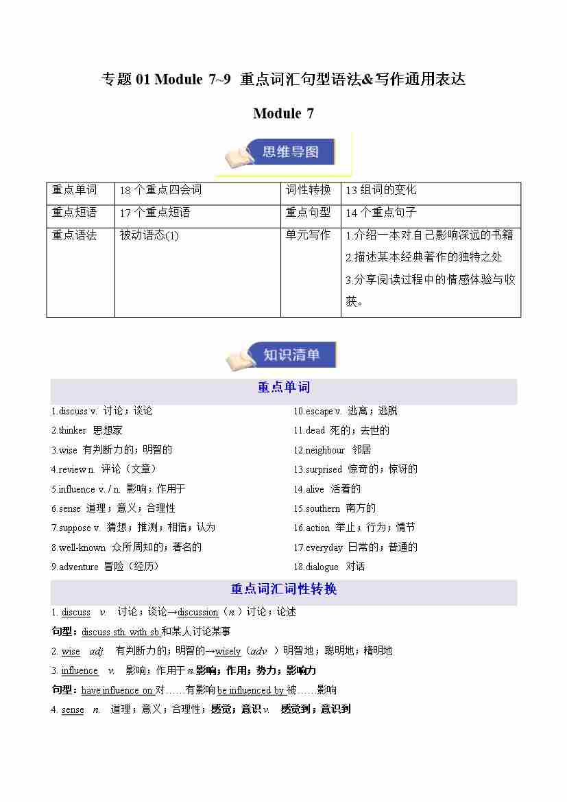 专题01 九上Module 1~3 重点词汇句型语法&写作通用表达(期末复习知识清单)(背诵版)