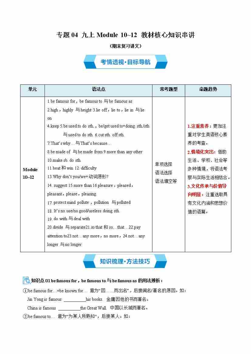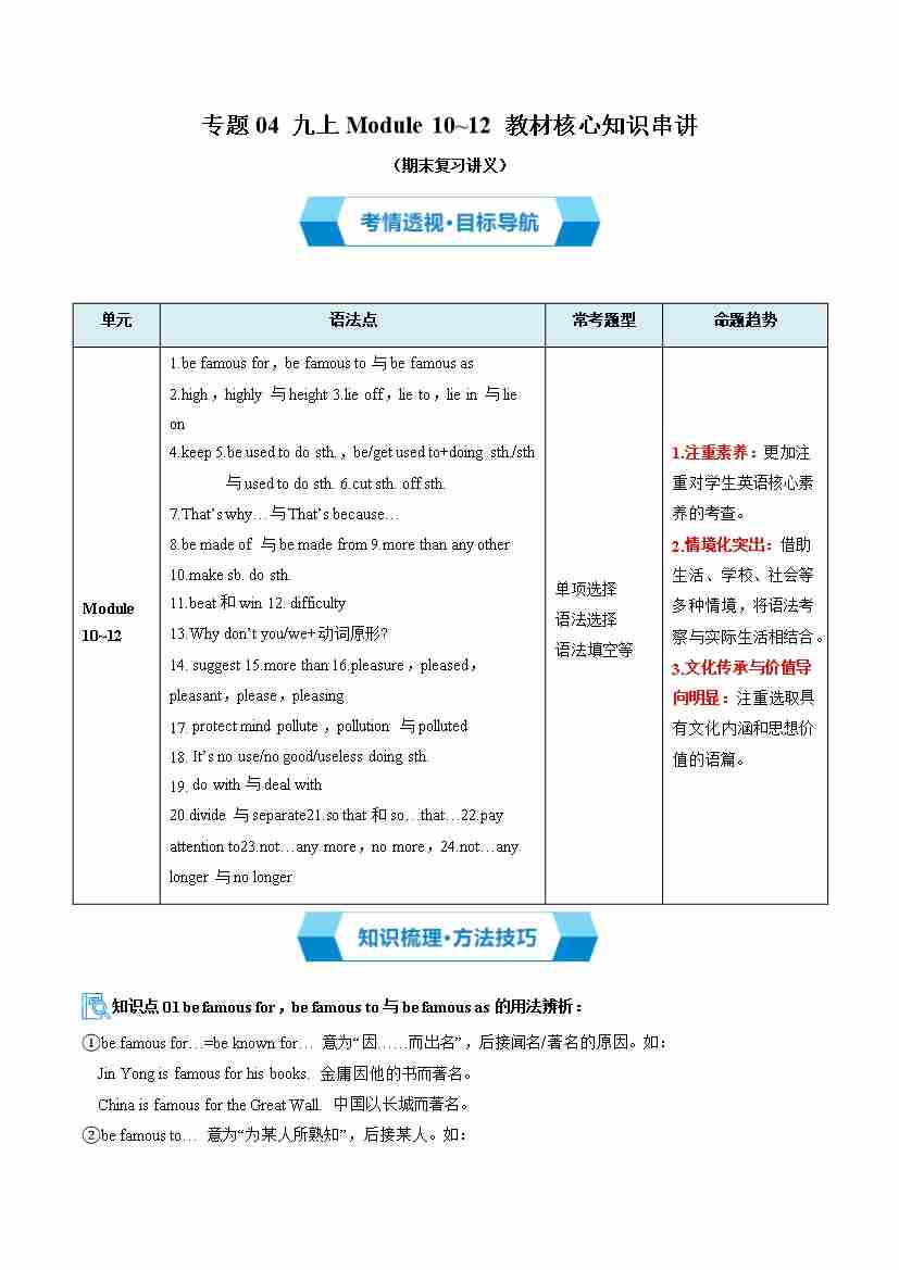 专题04 九上Module 10~12 教材核心知识串讲(期末复习讲义)(解析版)