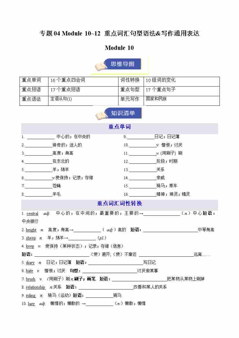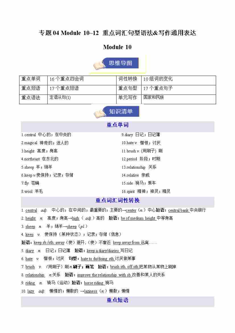 专题04 九上Module 10~12 重点词汇句型语法&写作通用表达(期末复习知识清单)(默写版)