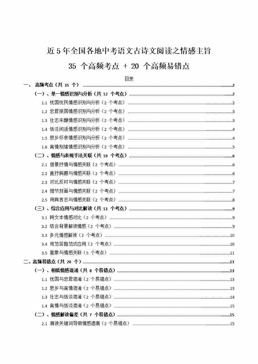 [53921745]近5年全国各地中考语文古诗文阅读之情感主旨35个高频考点20个高频易错点