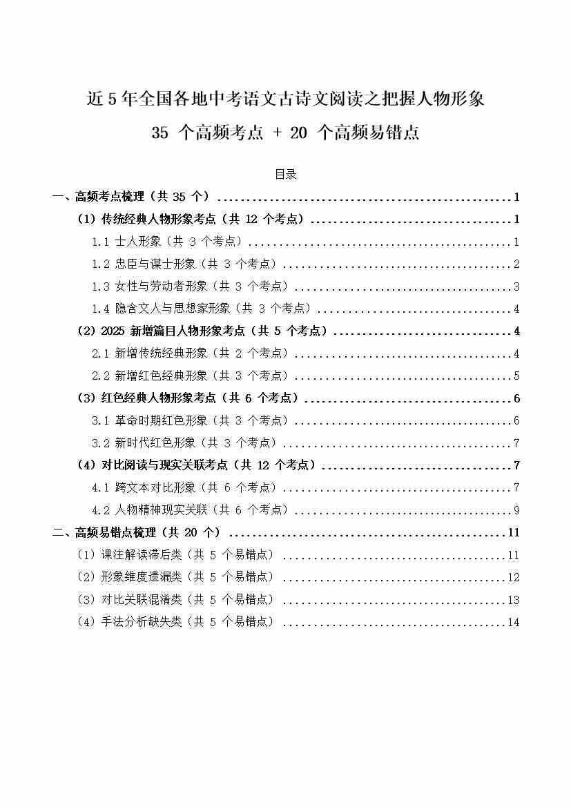 [53957326]近5年全国各地中考语文古诗文阅读之把握人物形象35个高频考点20个高频易错点
