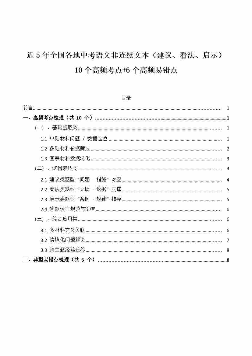[54073913]近5年全国各地中考语文非连续文本(建议、看法、启示)10个高频考点6个高频易错点