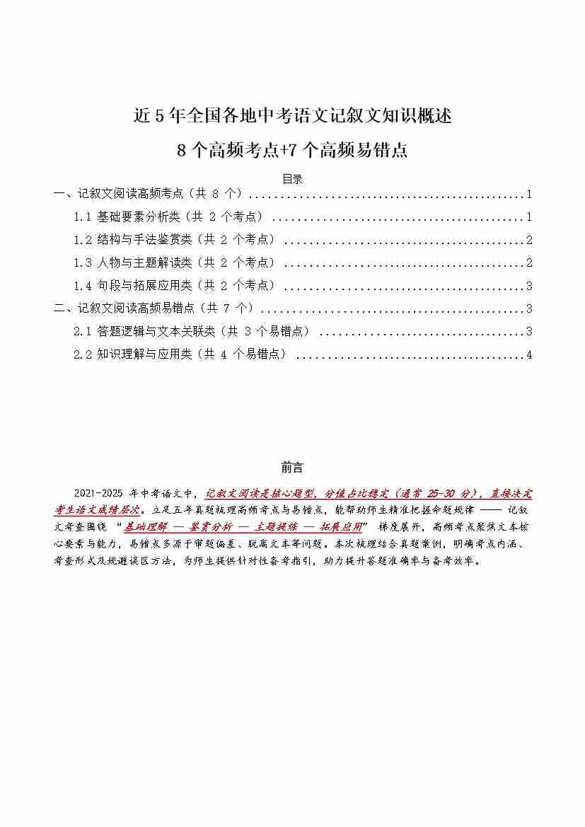[54179564]近5年全国各地中考语文记叙文知识概述8个高频考点7个高频易错点