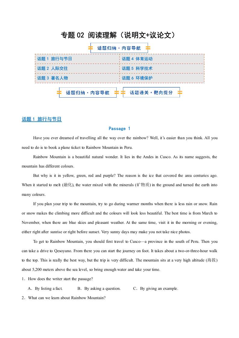 考前押题02 阅读理解(说明文议论文)(期末复习专项训练)(学生版)