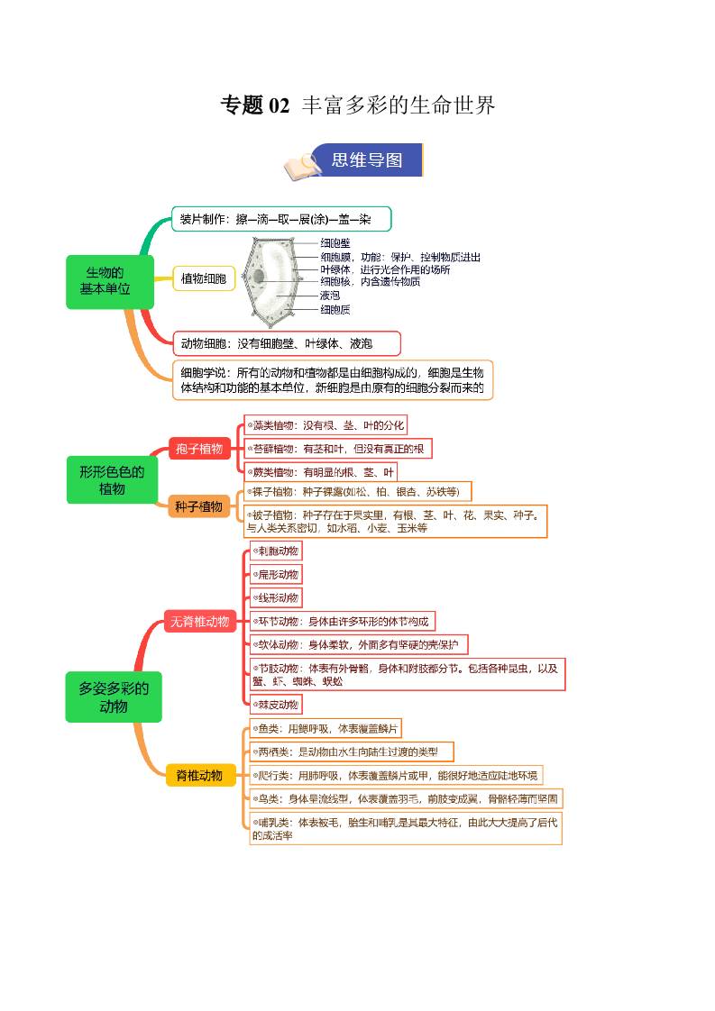 专题02 丰富多彩的生命世界(期末复习知识清单)(教师版)