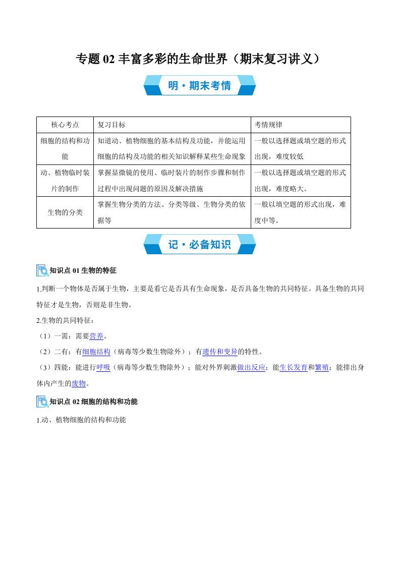 专题02 丰富多彩的生命世界(期末复习讲义)(学生版)