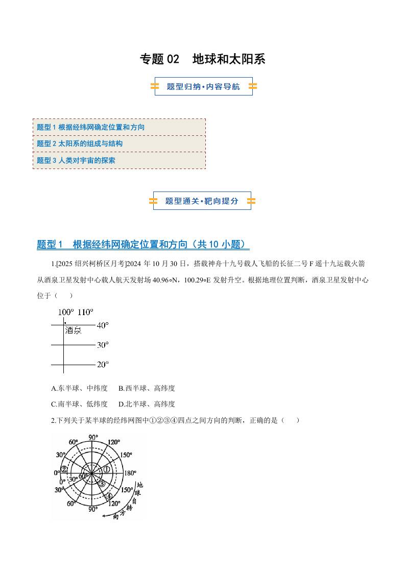 专题02 地球和太阳系(期末专项训练)(原卷版)