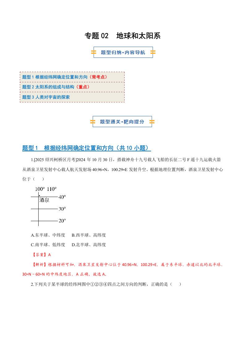 专题02 地球和太阳系(期末专项训练)(解析版)