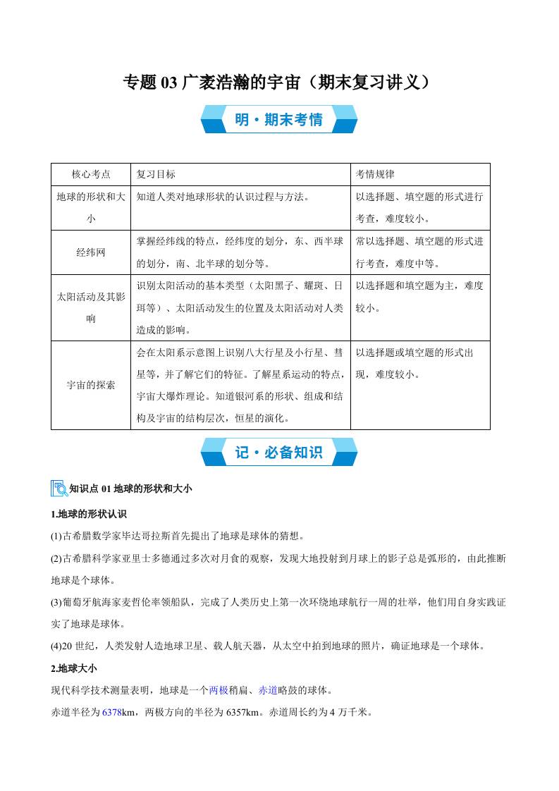 专题03 广袤浩瀚的宇宙(期末复习讲义)(教师版)
