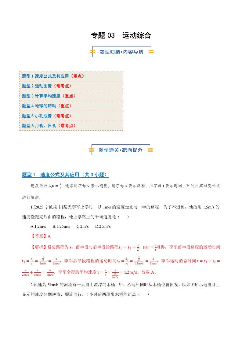 专题04 多种多样的运动、探索技术与工程(期末复习讲义)(解析版)