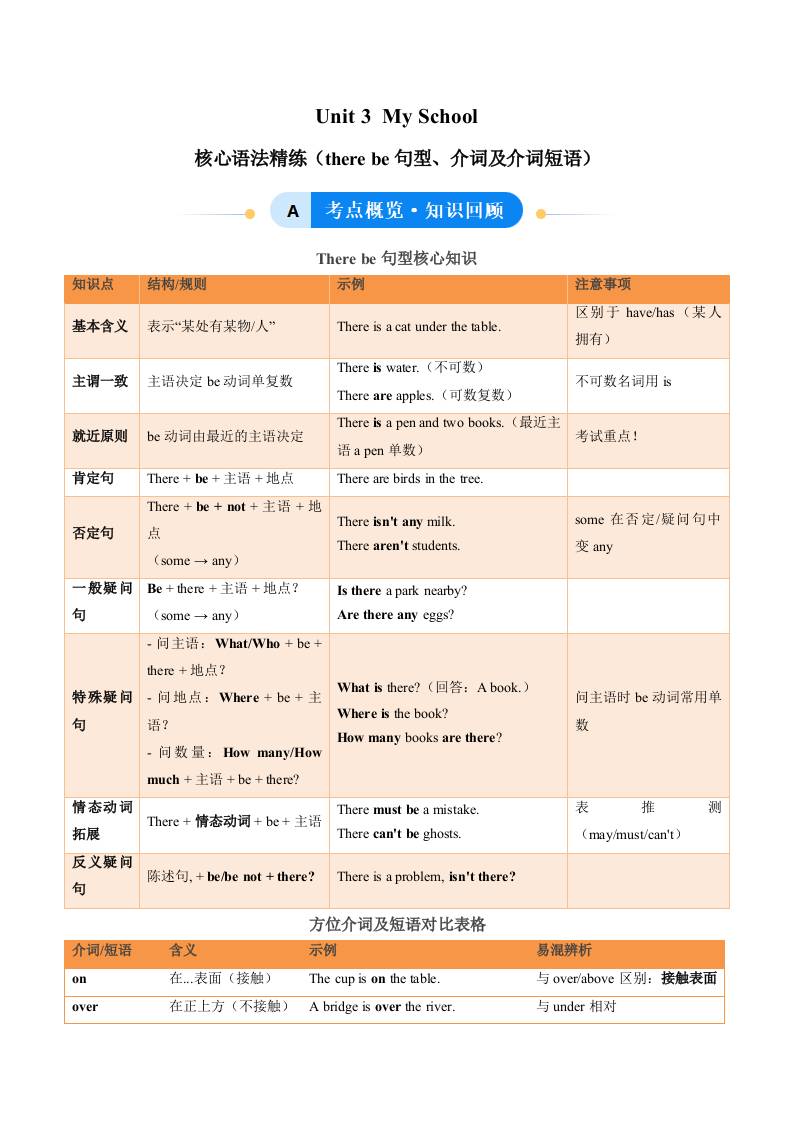 Unit 3 My School 动词的一般现在时、there be句型(单元核心语法精练)(原卷版)