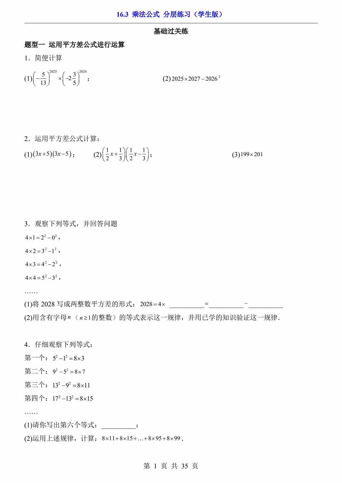 16.3 乘法公式(分层练习)