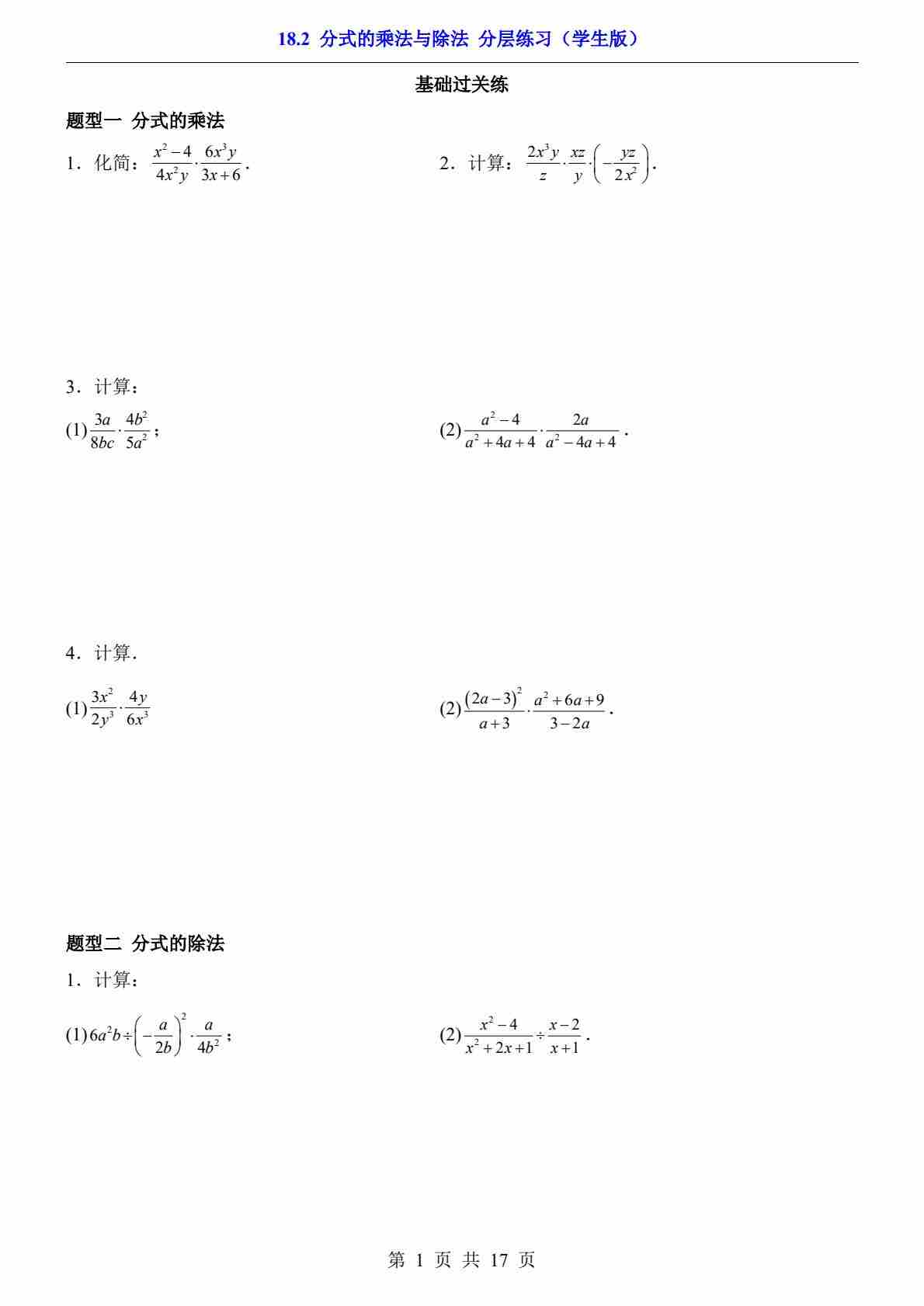18.2 分式的乘法与除法(分层练习)