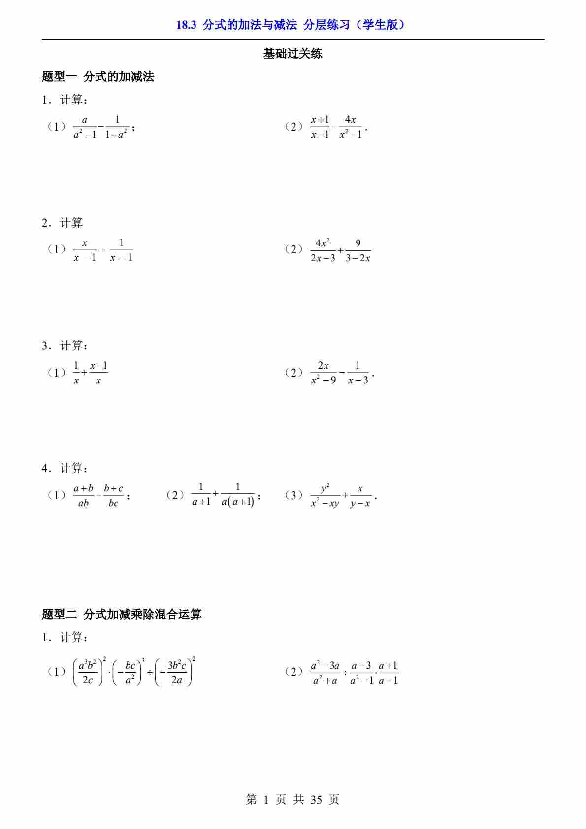 18.3 分式的加法与减法(分层练习)