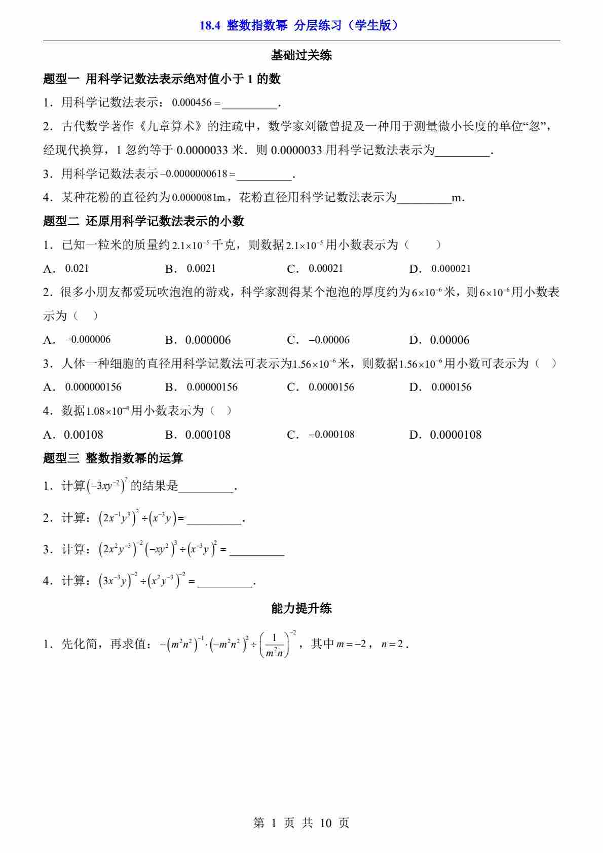 18.4 整数指数幂(分层练习)