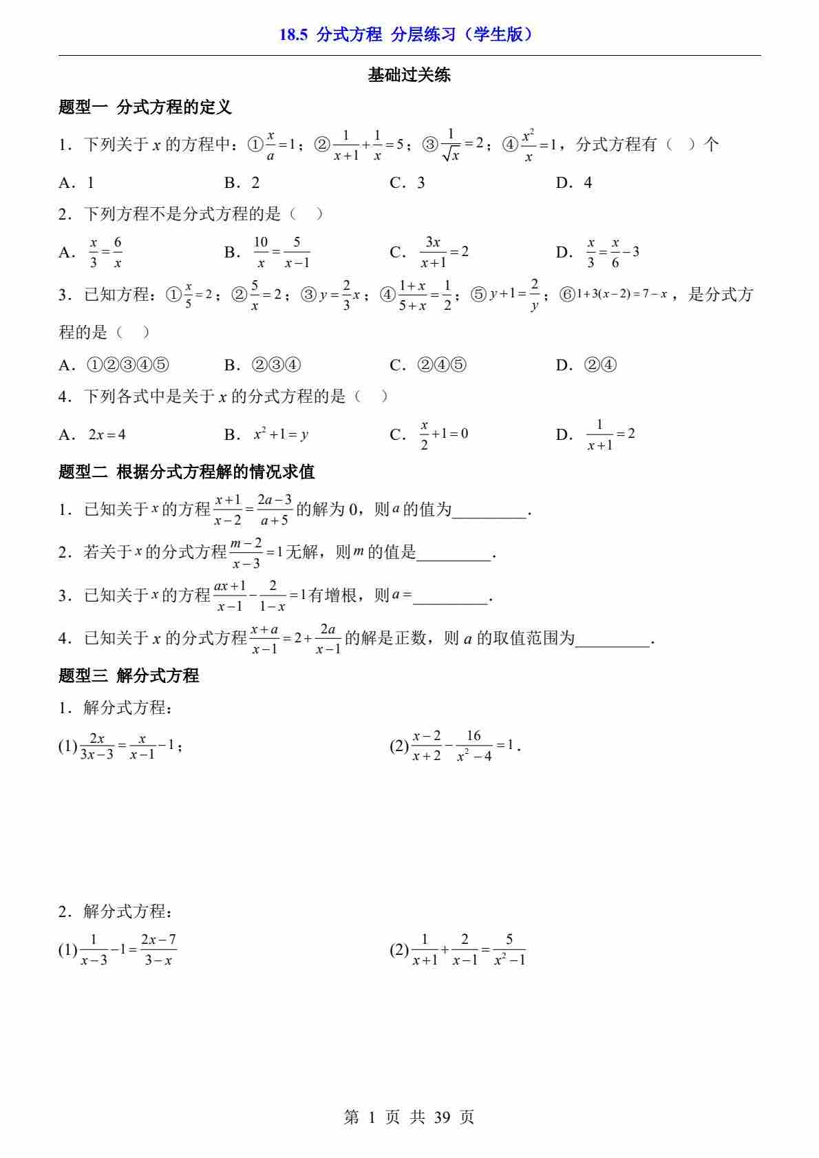 18.5 分式方程(分层练习)