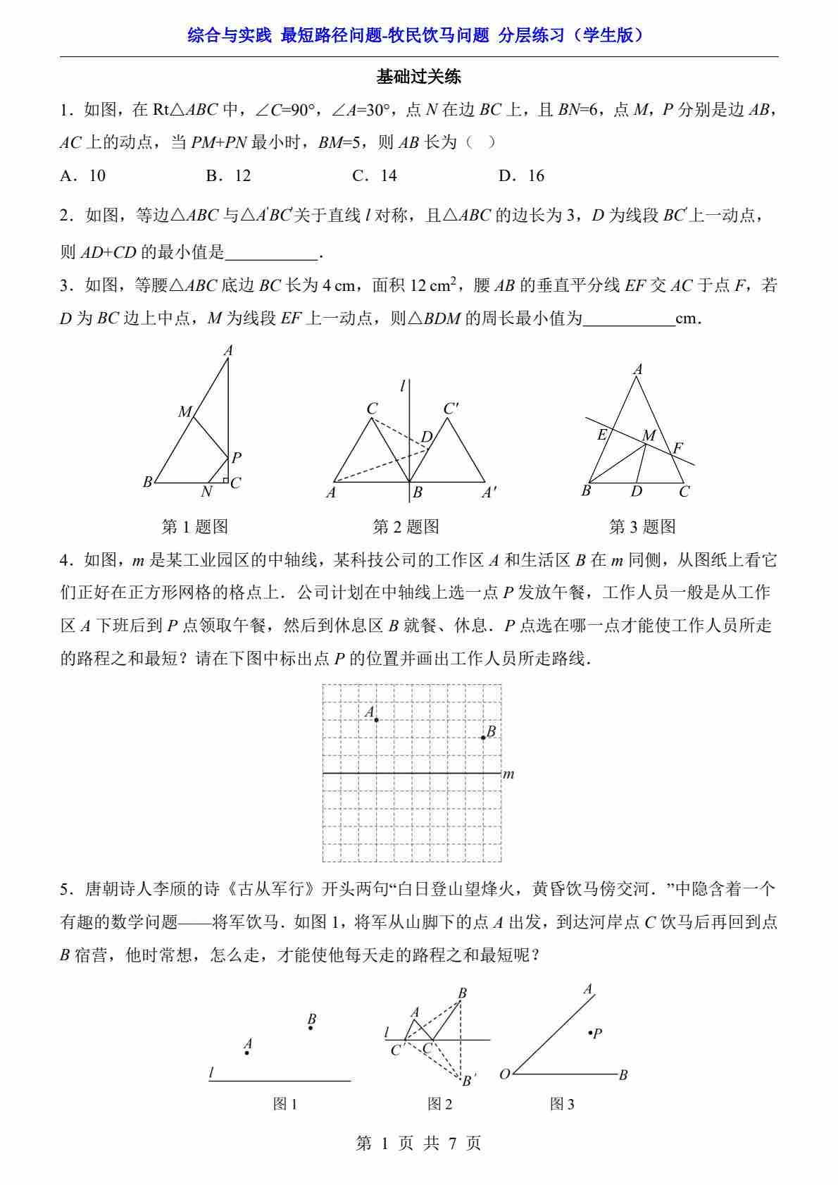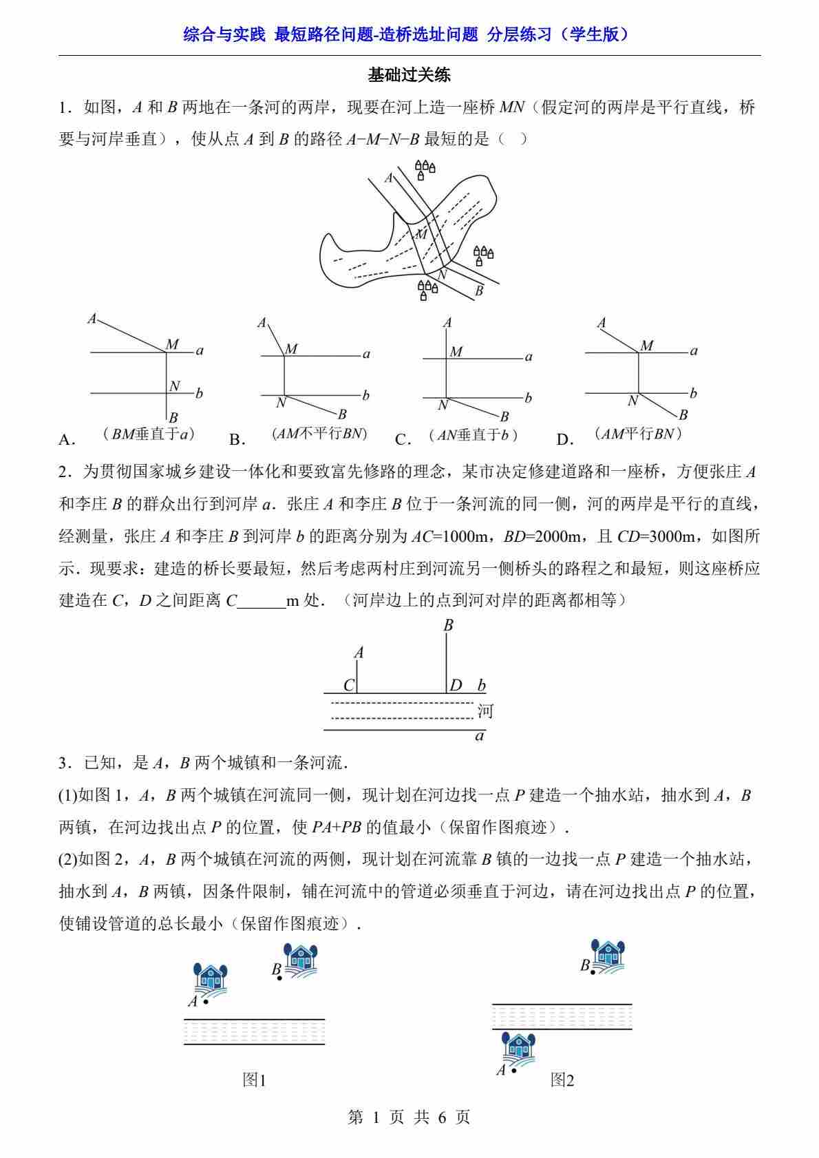 综合与实践 最短路径问题-造桥选址问题(分层练习)