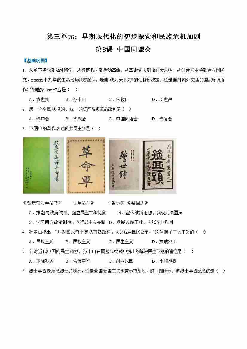 第8课中国同盟会(任务型分层作业)(原卷版)