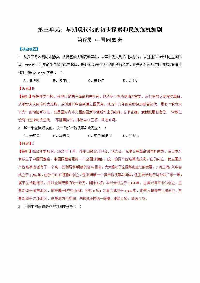 第8课中国同盟会(任务型分层作业)(解析版)