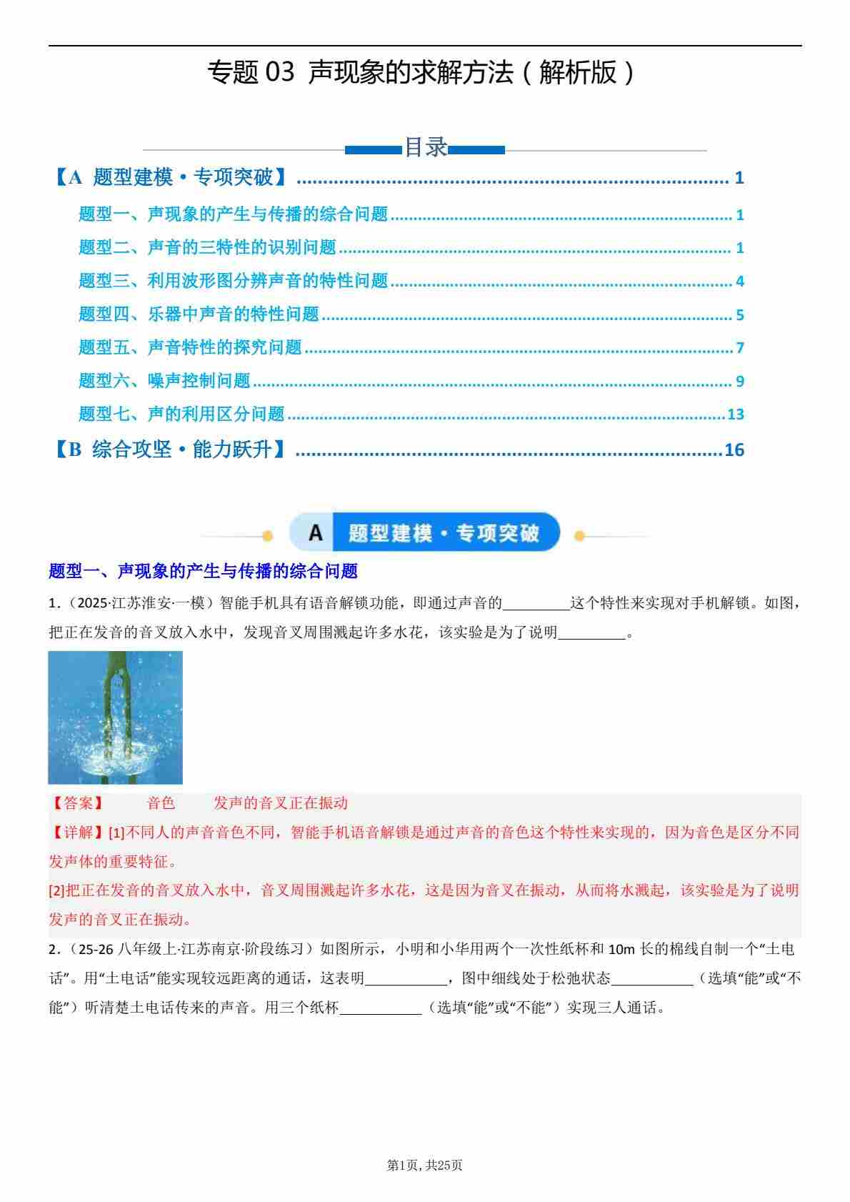 【八上人教物理】专题03 声现象问题的求解方法(专项训练)(解析版)