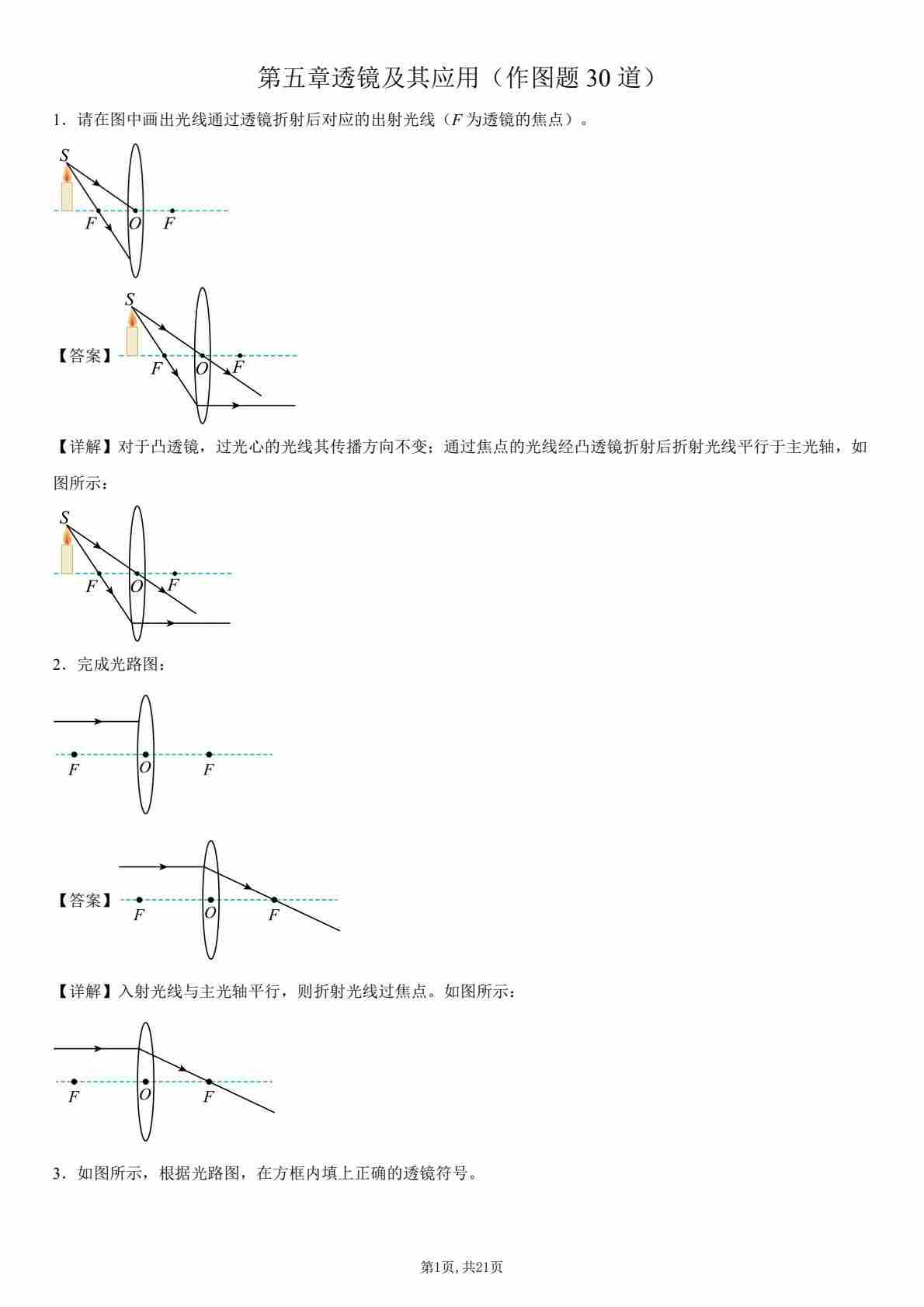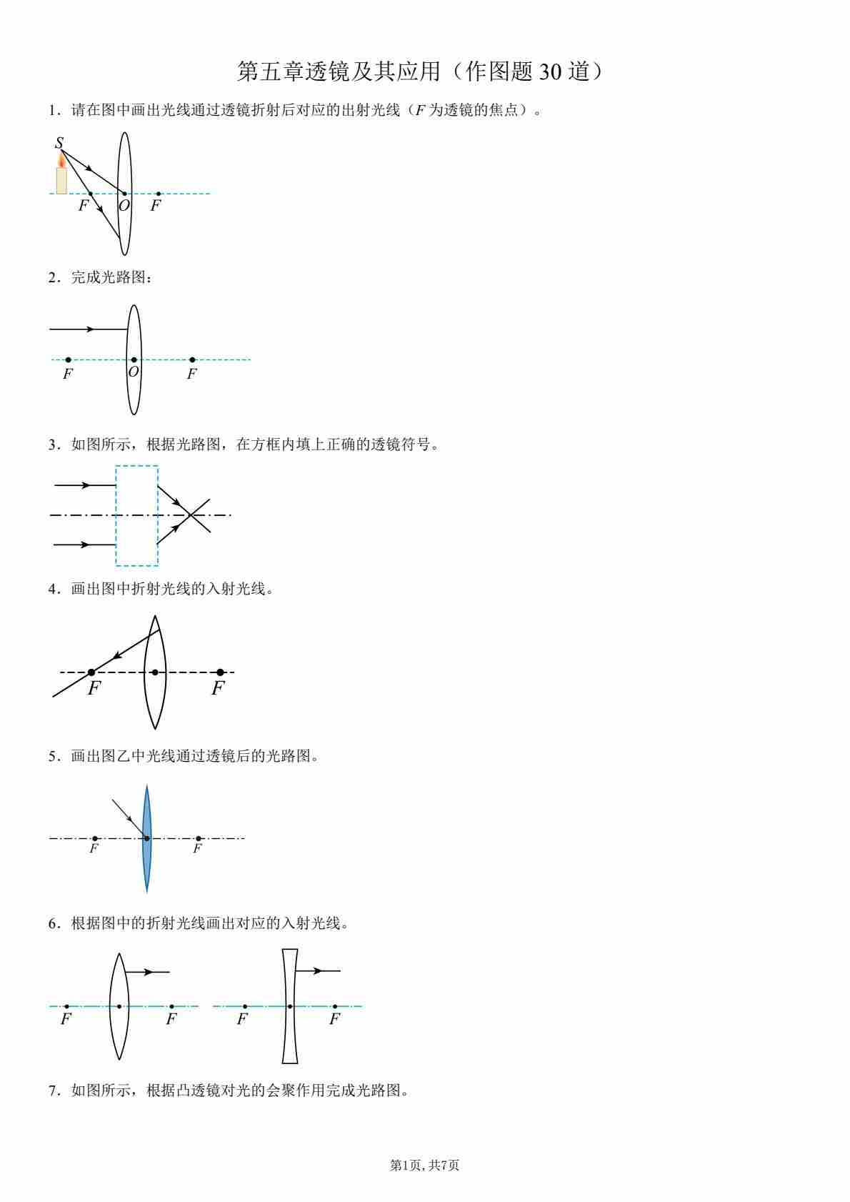 【八上人教物理】第五章 透镜及其应用(作图题30道)(原卷版)1