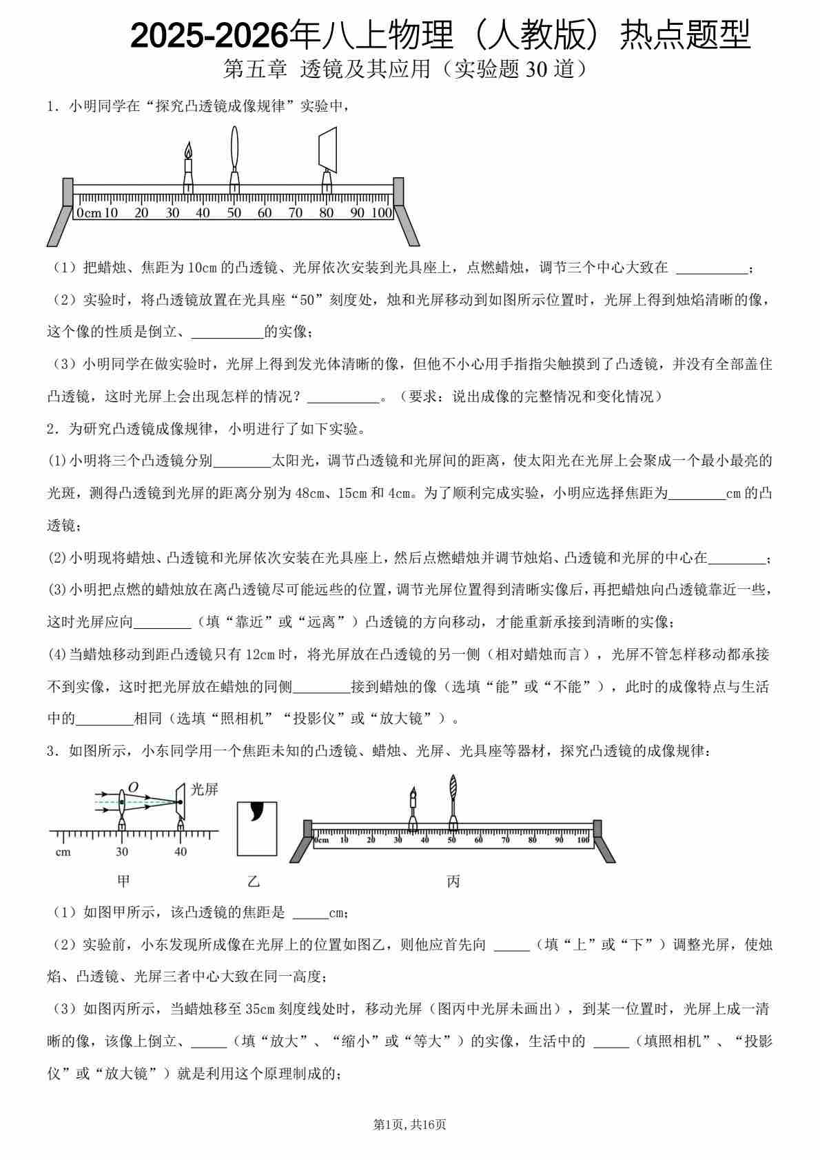 【八上人教物理】第五章 透镜及其应用(实验题30道)(原卷版)1