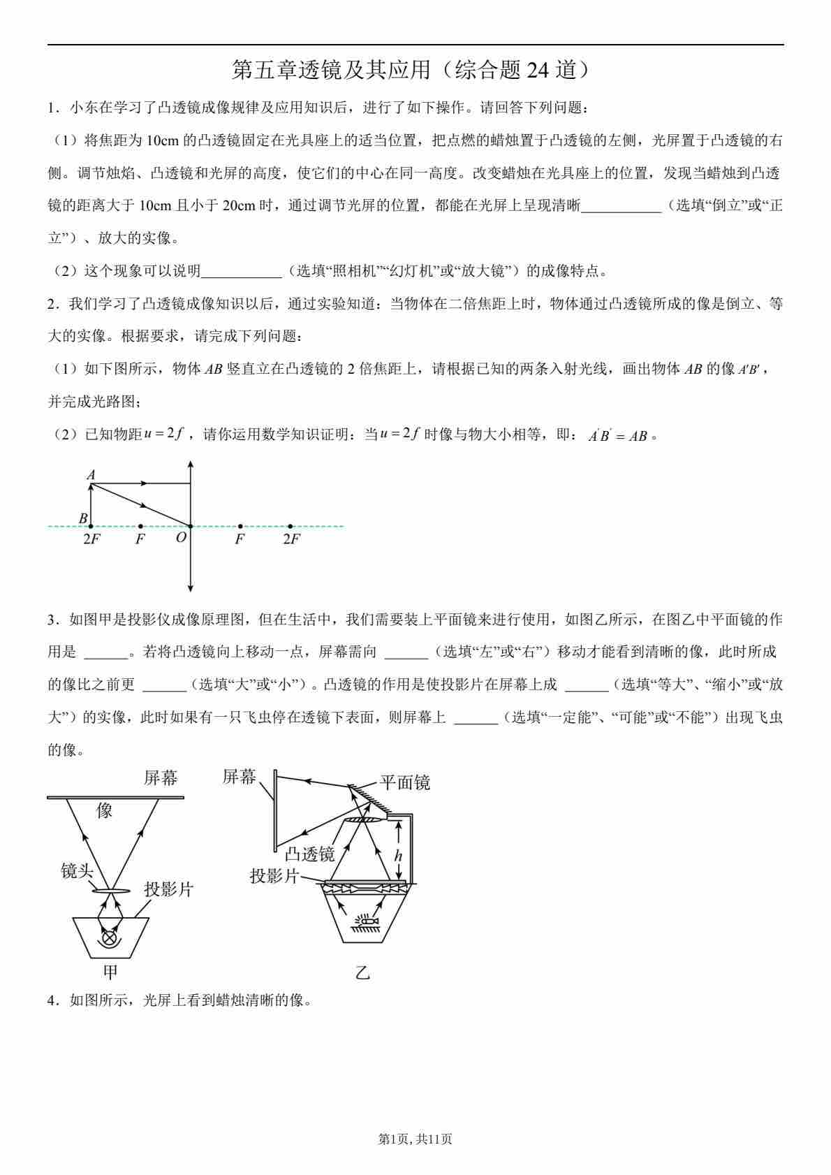 【八上人教物理】第五章 透镜及其应用(综合题24道)(原卷版)1