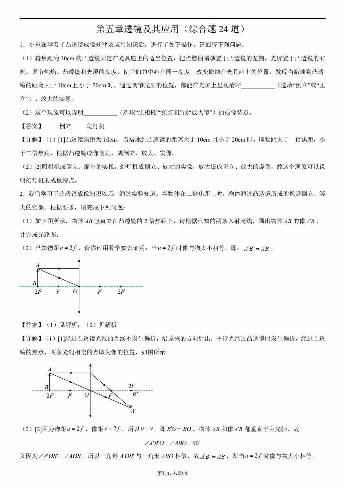 【八上人教物理】第五章 透镜及其应用(综合题24道)(解析版)1