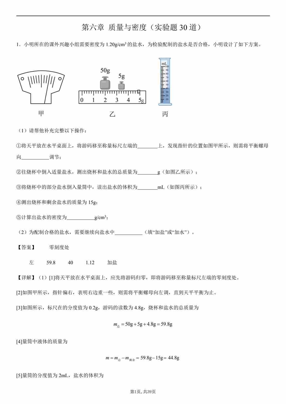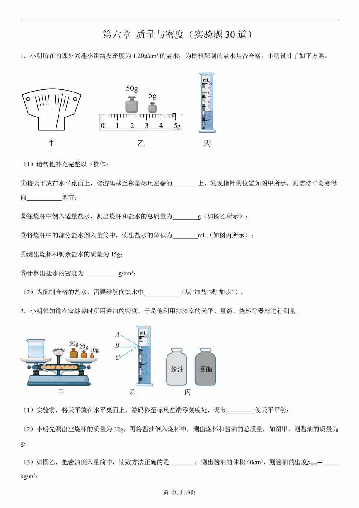 【八上人教物理】第六章 质量与密度(实验题30道)(原卷版)1