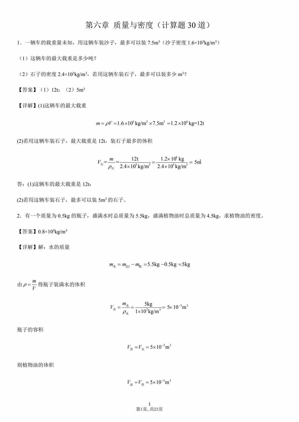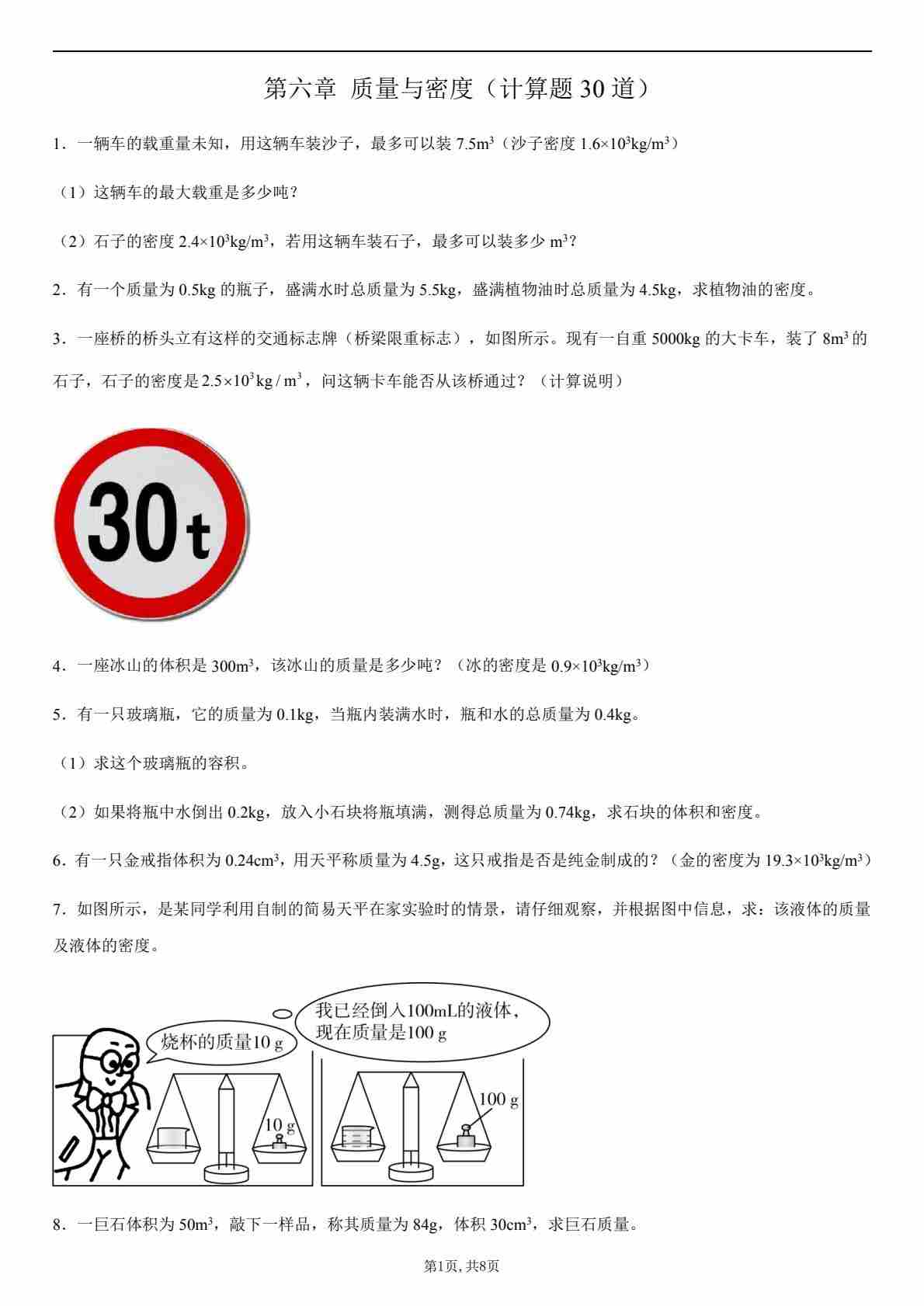 【八上人教物理】第六章 质量与密度(计算题30道)(原卷版)1