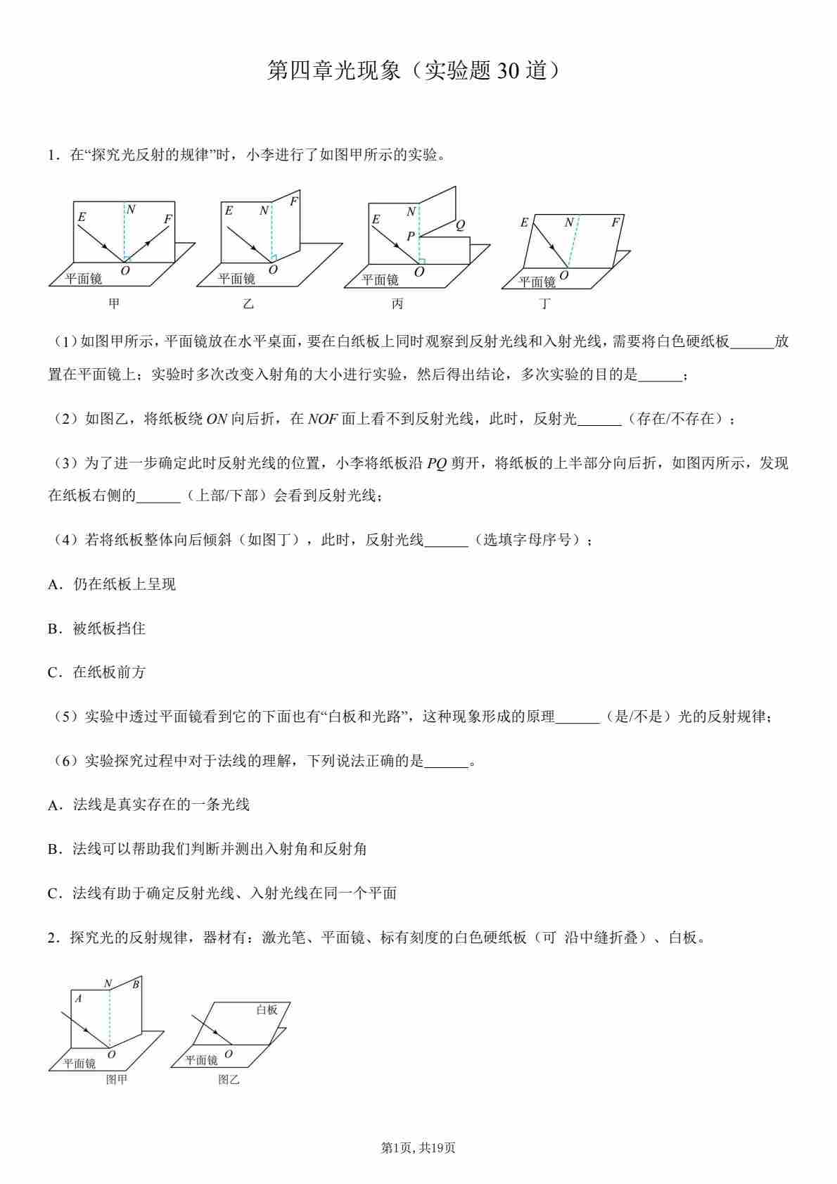 【八上人教物理】第四章 光现象(实验题30道)(原卷版)1
