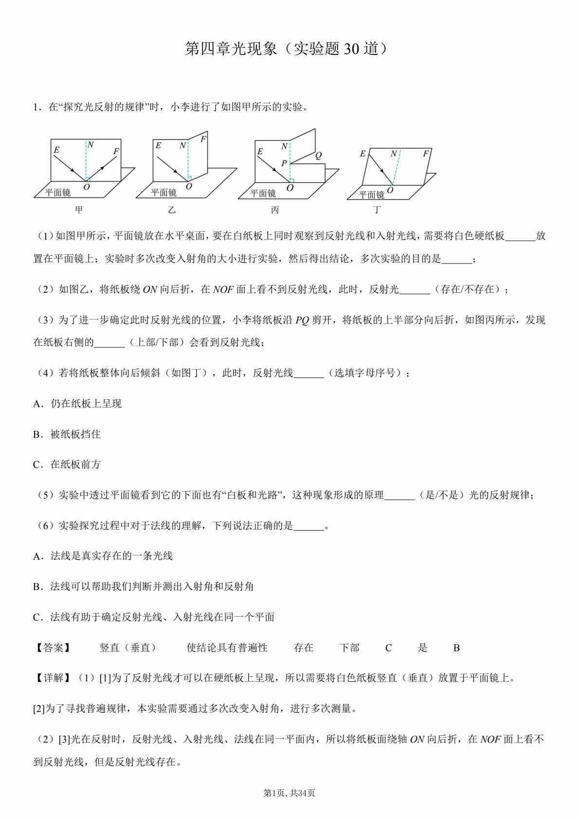 【八上人教物理】第四章 光现象(实验题30道)(解析版)1