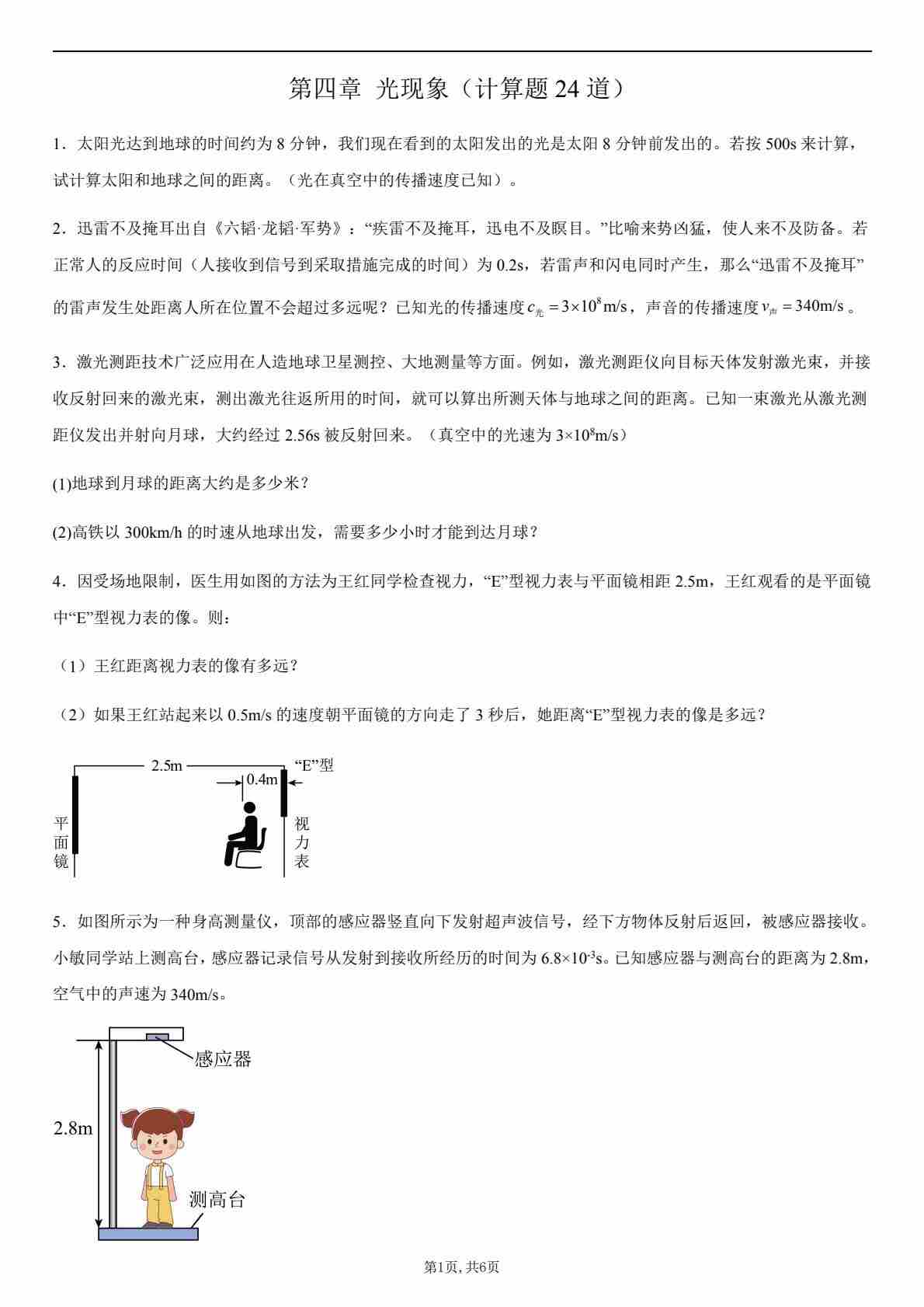 【八上人教物理】第四章 光现象(计算题24道)(原卷版)1