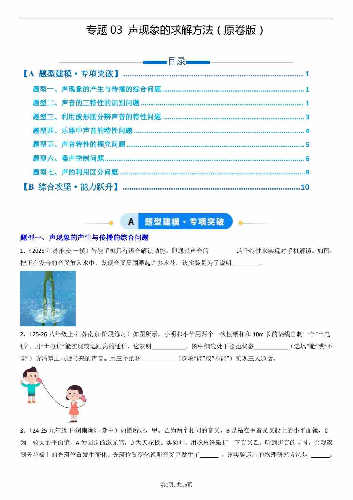 【八上人教物理】专题03 声现象问题的求解方法(专项训练)(原卷版)