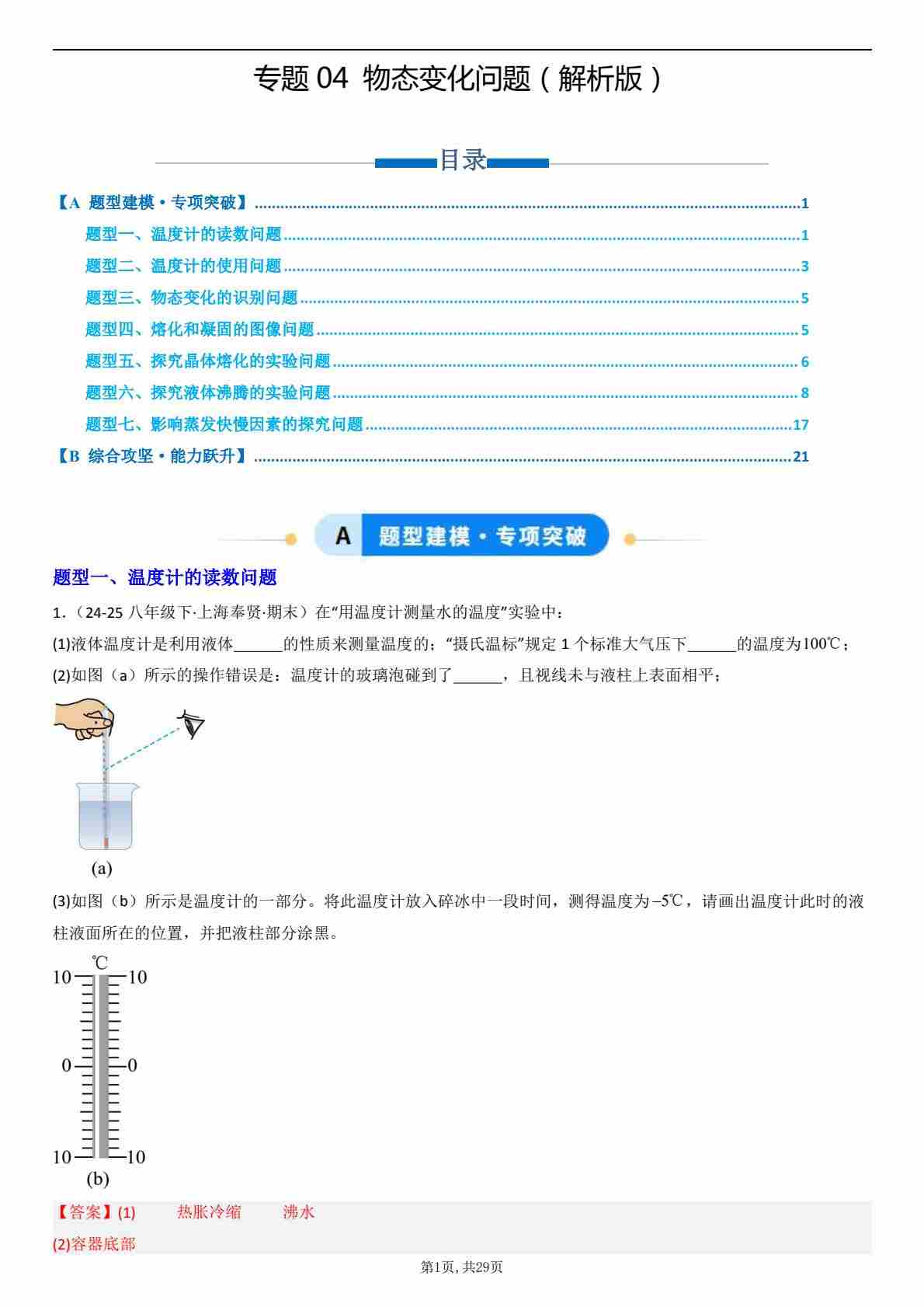【八上人教物理】专题04 热学问题的求解方法(专项训练)(解析版)
