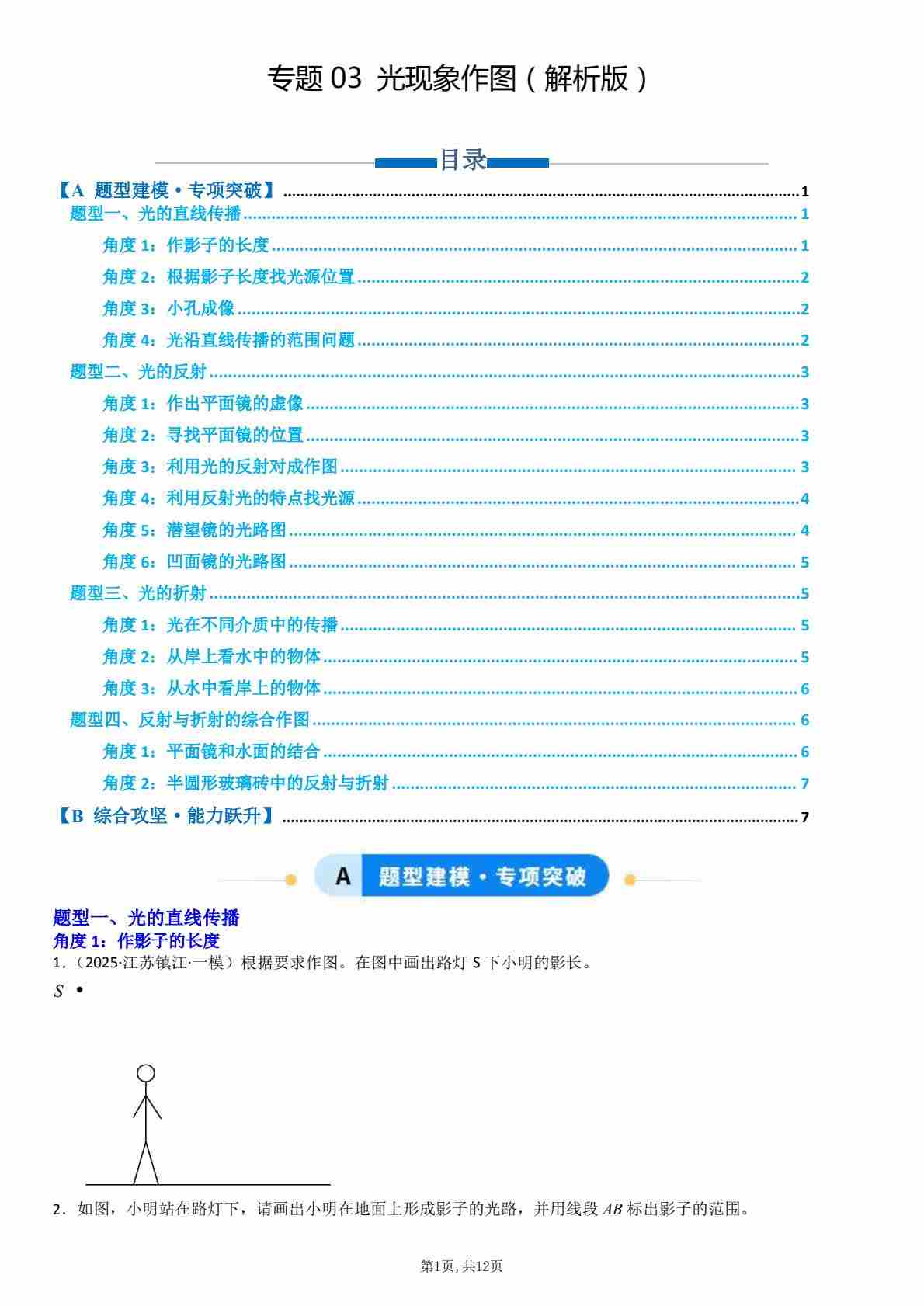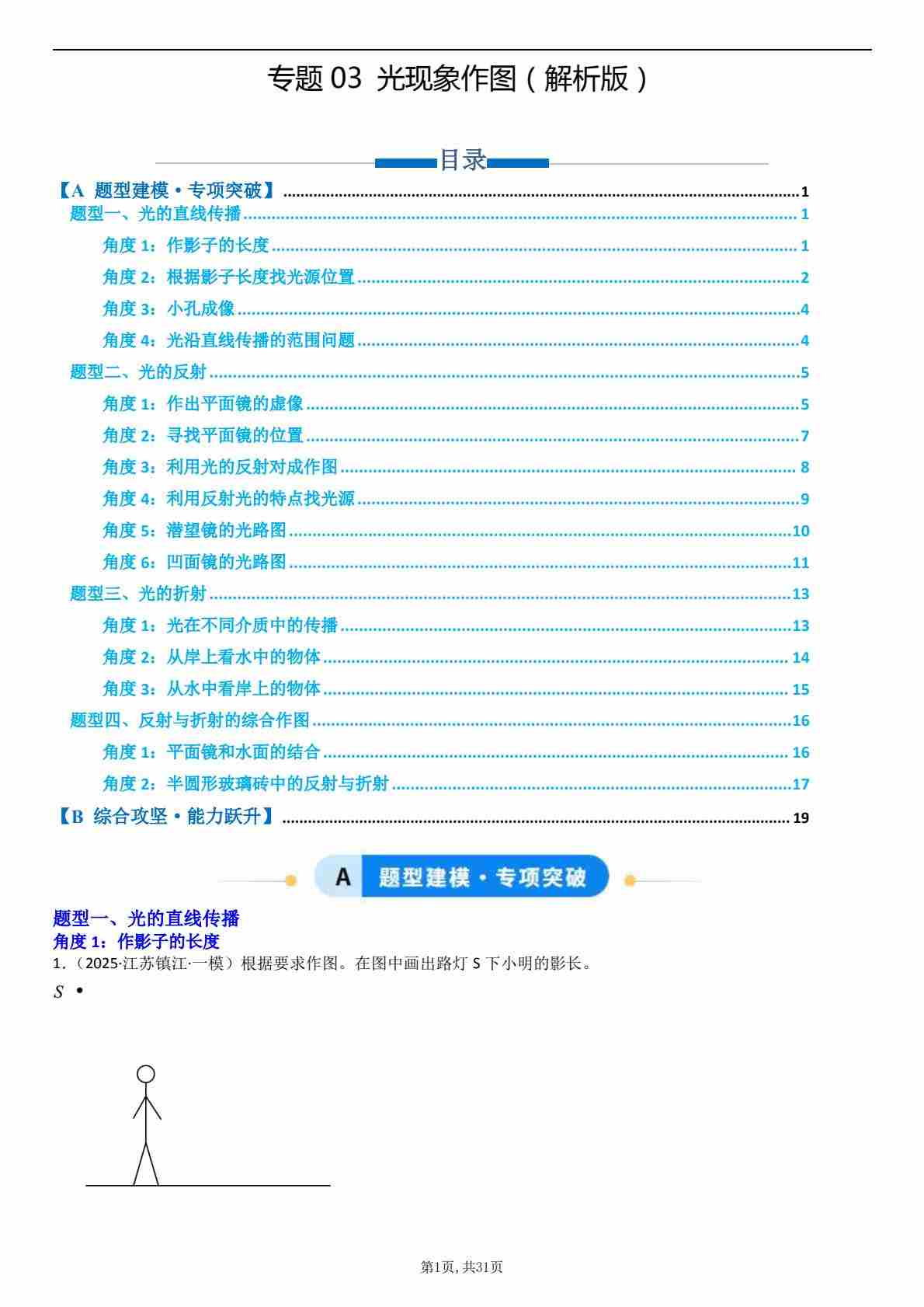 【八上人教物理】专题05 光现象作图(专项训练)(原卷版)