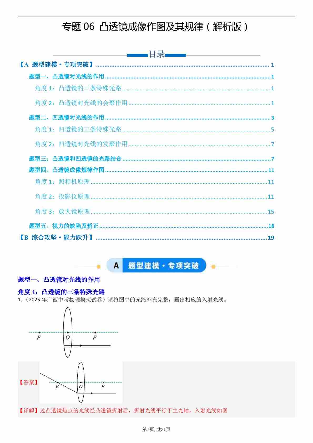 【八上人教物理】专题06 凸透镜成像作图及其规律(专项训练)解析版