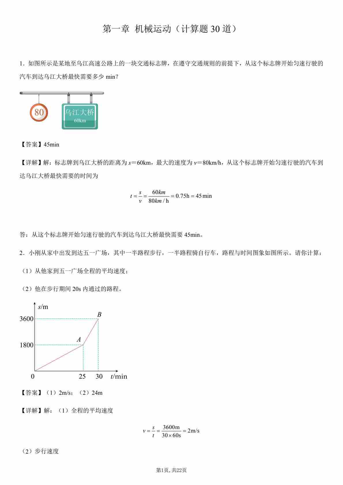 【八上人教物理】第一章 机械运动(计算题30道)(解析版)